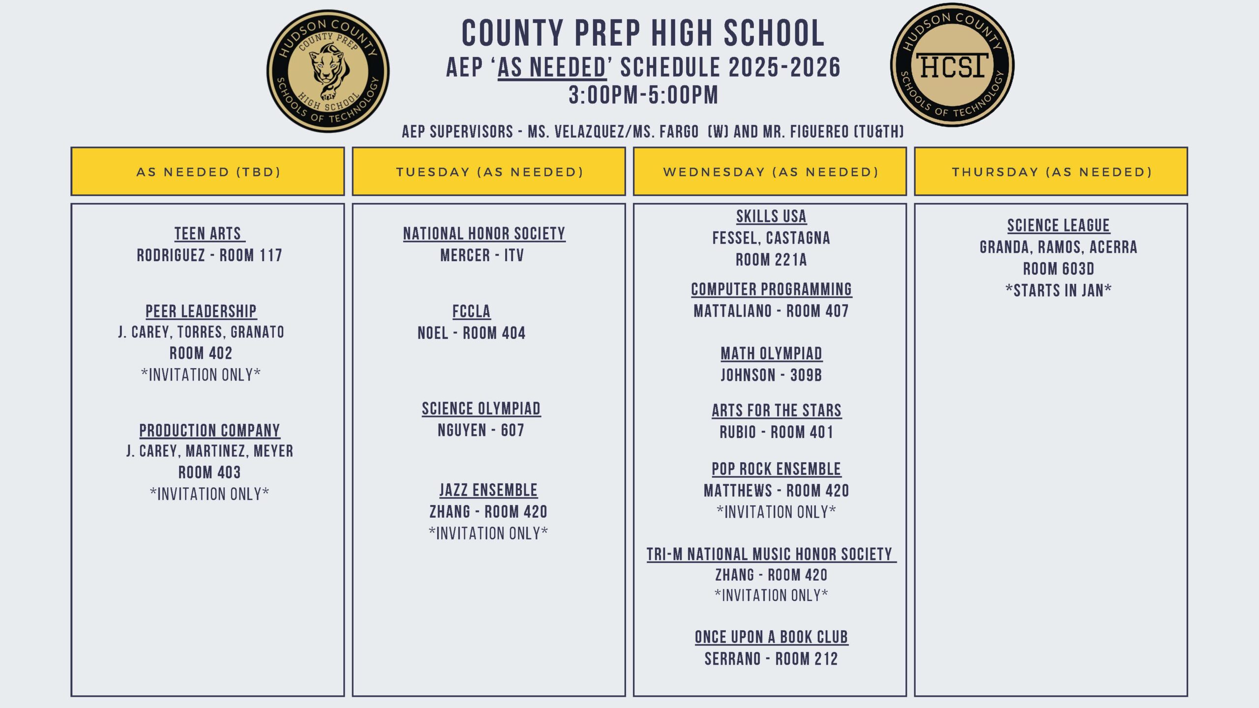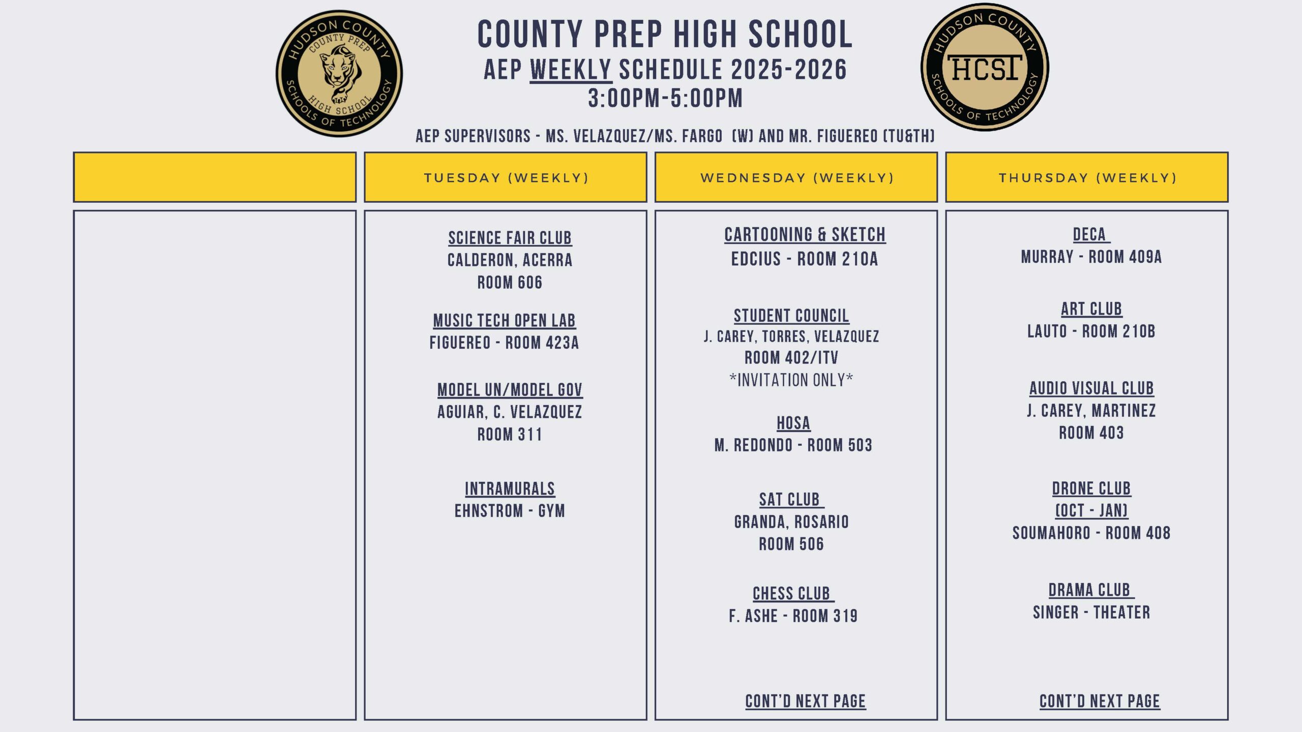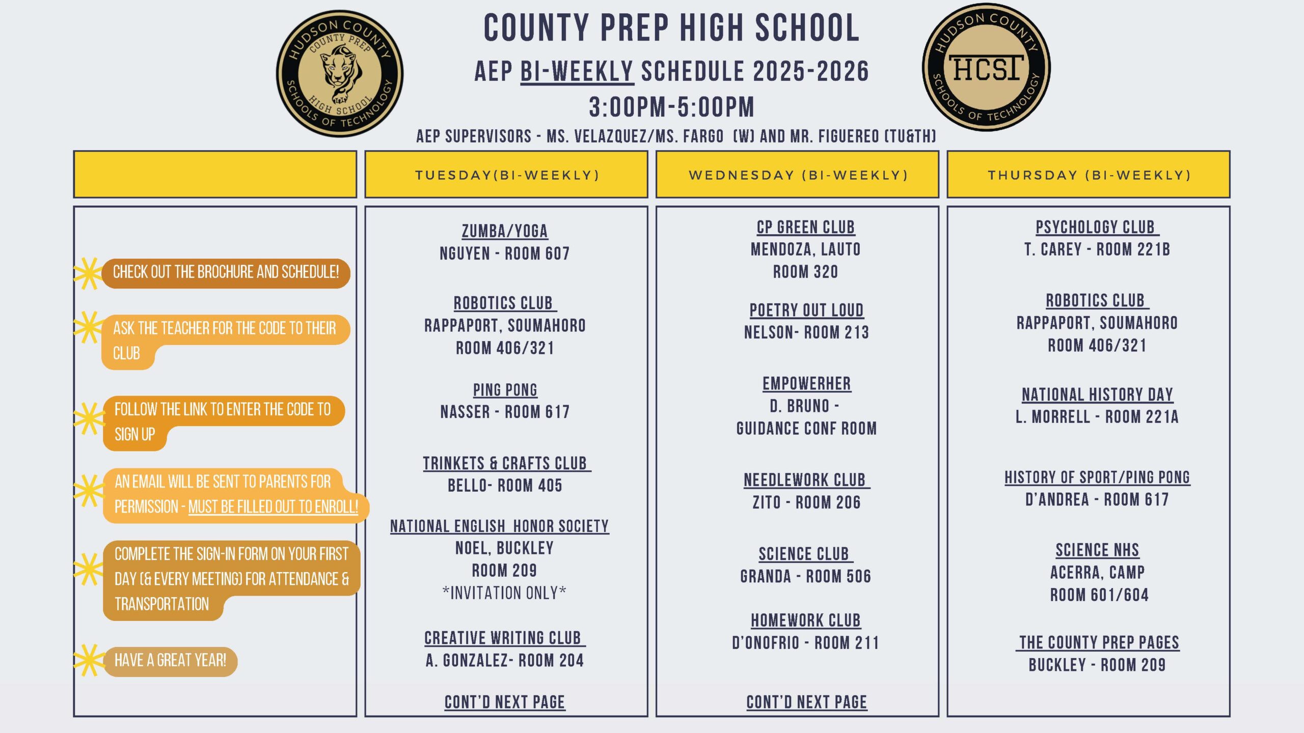 Students must sign in everyday for attendance- please see your club advisor for a QR code.