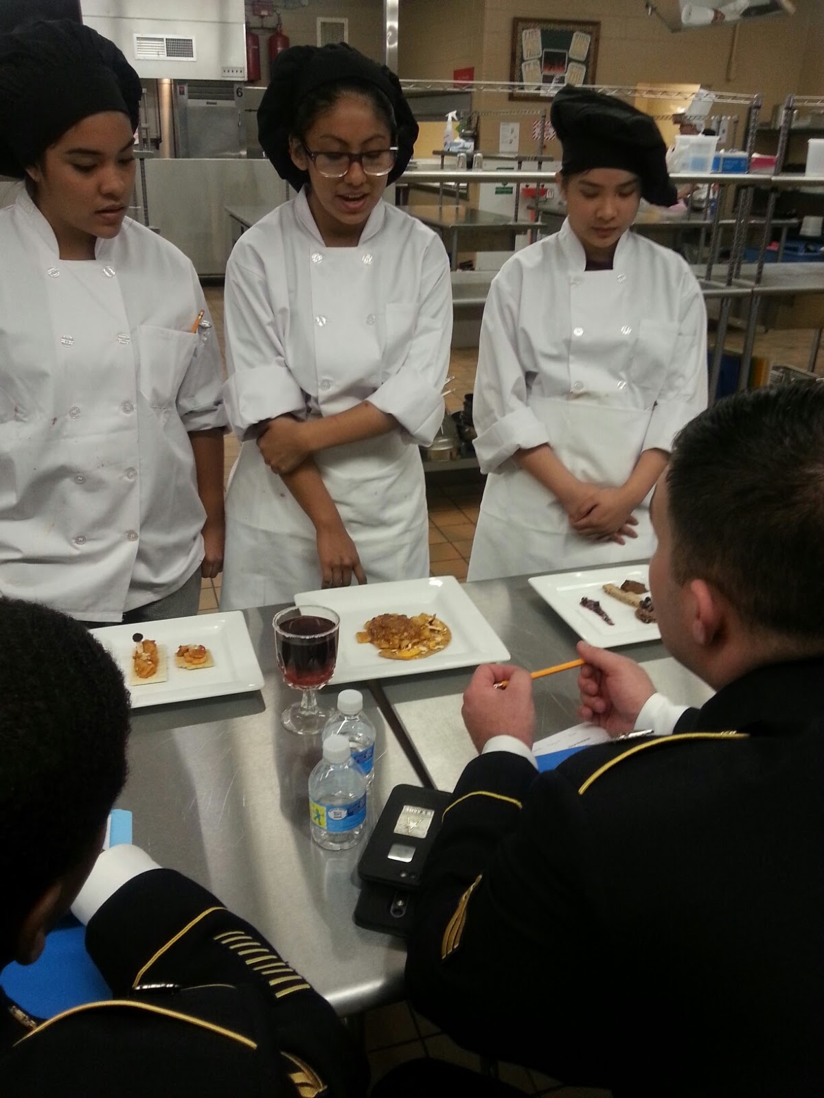 On Friday, March 3rd, the County Prep High School Culinary Arts team competed in the Skills USA “MRE” challenge. There were fourteen teams in the contest. The student chefs were given 6 MREs: “meals ready to eat that military branches use when training or in battle.” The gold medal winners created a meal which consisted of three courses that corresponded to the military: