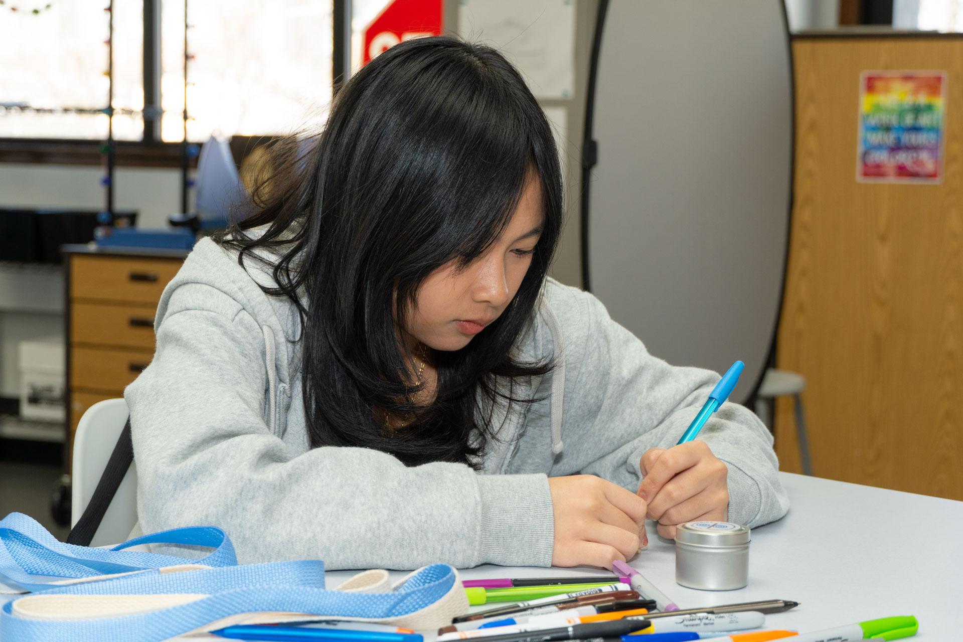 During the workshop, students created personal scrolls using color, symbolism and words to express their individual identities, values, and stories. In addition to their individual work, students collaborated on a legacy scroll representing New Jersey. This collective piece will be displayed at the John F. Kennedy Center for the Performing Arts in Washington, D.C., as part of a national exhibition running from Memorial Day through Labor Day 2026.